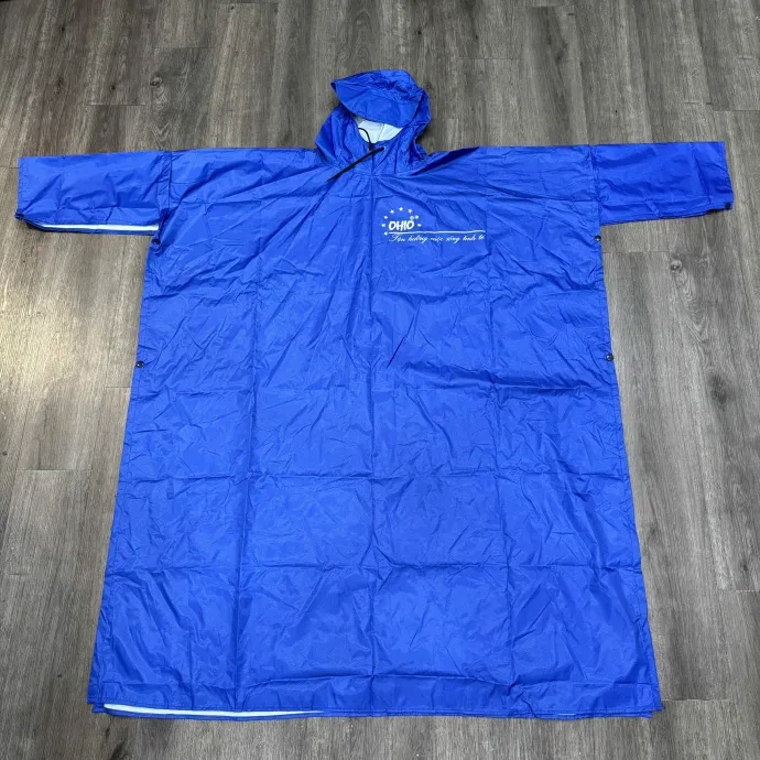 Áo mưa cánh dơi chất liệu vải dù cao cấp, chống thấm nước hiệu quả, đường may chắc chắn. Thiết kế rộng rãi, thoáng mát, có thể in logo doanh nghiệp để làm quà tặng quảng cáo, sự kiện hoặc tri ân khách hàng.