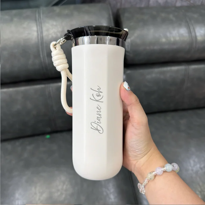 Ly giữ nhiệt dây treo cao cấp – thiết kế tinh tế, gam màu trắng trang nhã, dễ in logo theo yêu cầu. Phù hợp làm quà tặng hội nghị, ngân hàng, công ty hoặc sự kiện đặc biệt.