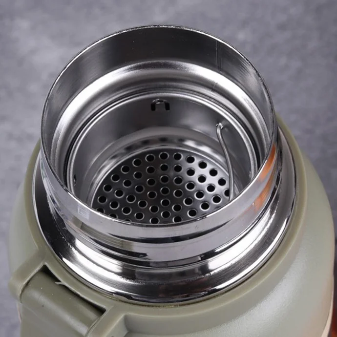 Bình được làm từ chất liệu inox cao cấp, thân bình chắc chắn, nắp vặn kín kết hợp quai xách tiện lợi, giúp hạn chế rò rỉ và tăng tính linh hoạt khi sử dụng.
