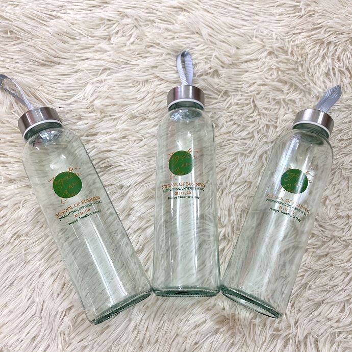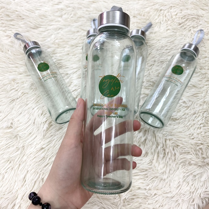 Bình thủy tinh được ưa chuộng nhờ kiểu dáng hiện đại, chất liệu an toàn cho sức khỏe và phù hợp với nhiều đối tượng người dùng. Khi kết hợp in logo theo yêu cầu, sản phẩm trở thành quà tặng ý nghĩa cho các chương trình, hội thảo và hoạt động nội bộ.