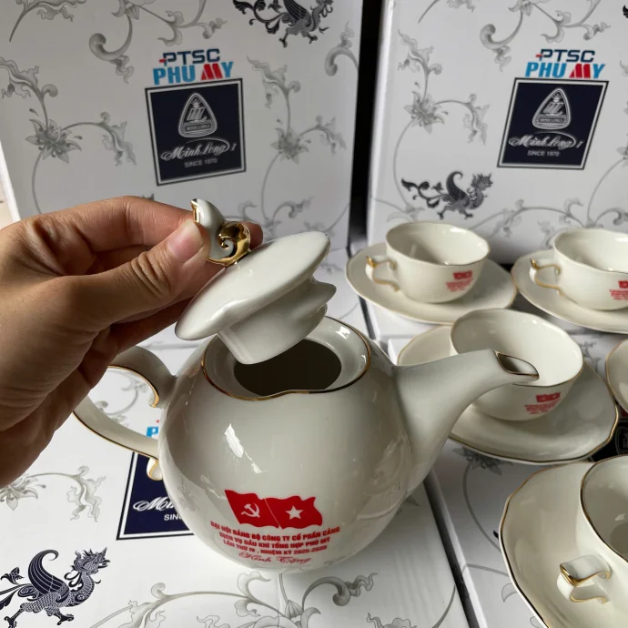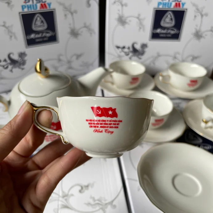 Chúng tôi cung cấp dịch vụ in logo lên bộ bình trà và ly với công nghệ in chất lượng cao. Logo công ty hoặc thông điệp sẽ được in trên bộ sản phẩm một cách sắc nét và tinh tế, tạo nên món quà tặng độc đáo.