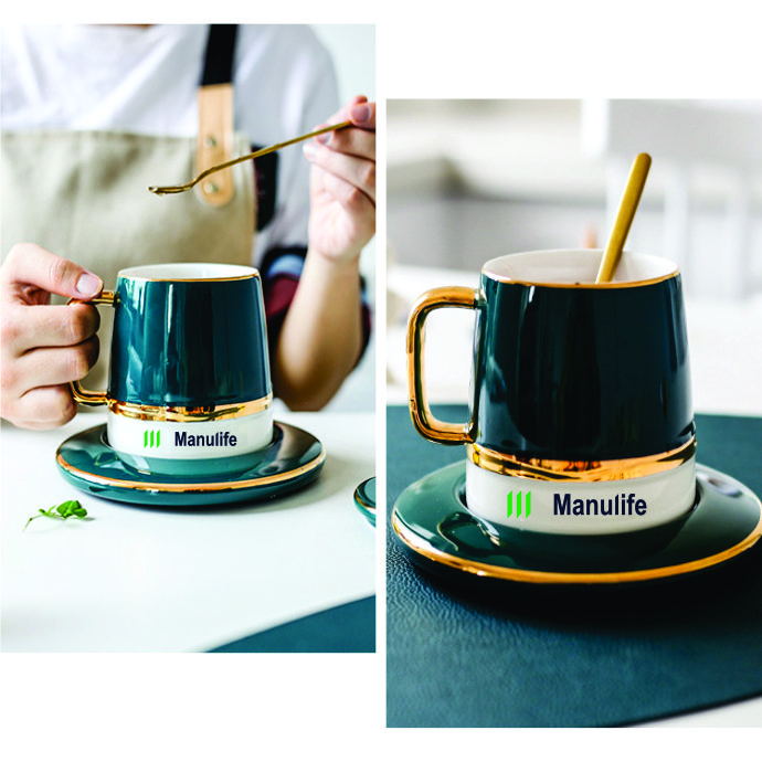 Ly sứ cà phê cao cấp thiết kế sang trọng, men bóng đẹp, phối viền ánh kim tinh tế. Phù hợp làm quà tặng doanh nghiệp, quà tri ân khách hàng, hội thảo – sự kiện và sử dụng tại văn phòng, quán cà phê.