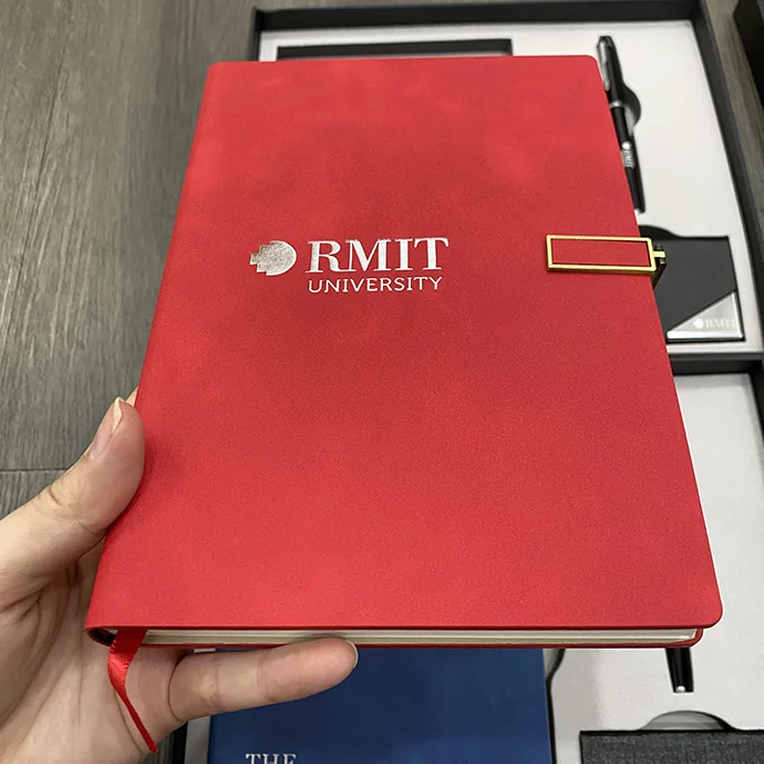 Khắc logo: Khắc laser logo RMIT, tên thương hiệu hoặc thông điệp lên sổ tay, namecard holder và bút kim loại.