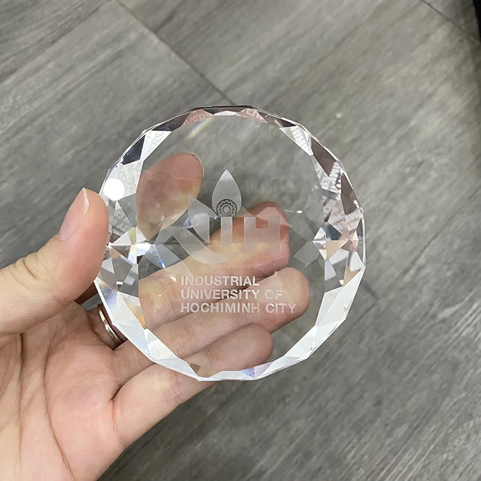 Pha lê tạo cảm giác trang trọng, phù hợp làm quà vinh danh, kỷ niệm, tri ân. Logo đơn vị có thể được in/khắc theo yêu cầu để tăng giá trị lưu niệm.