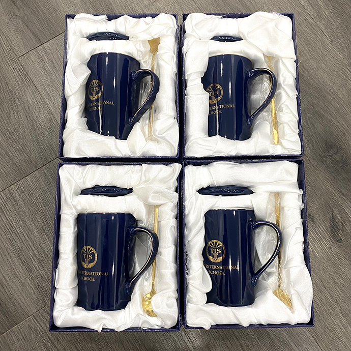 - Bộ ly sứ cao cấp gồm: hộp giấy cứng kèm mút, ly sứ, nắp, muỗng.