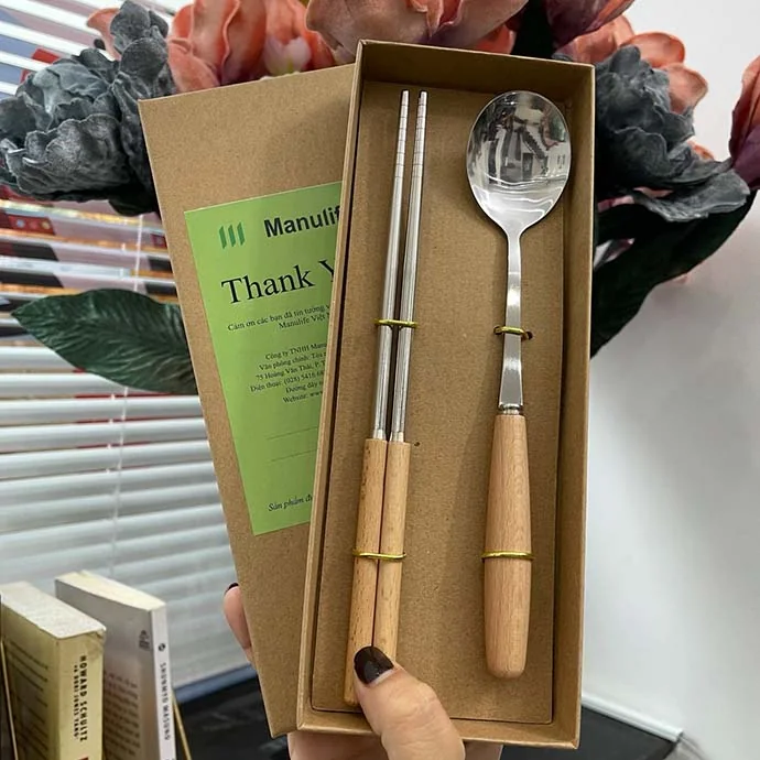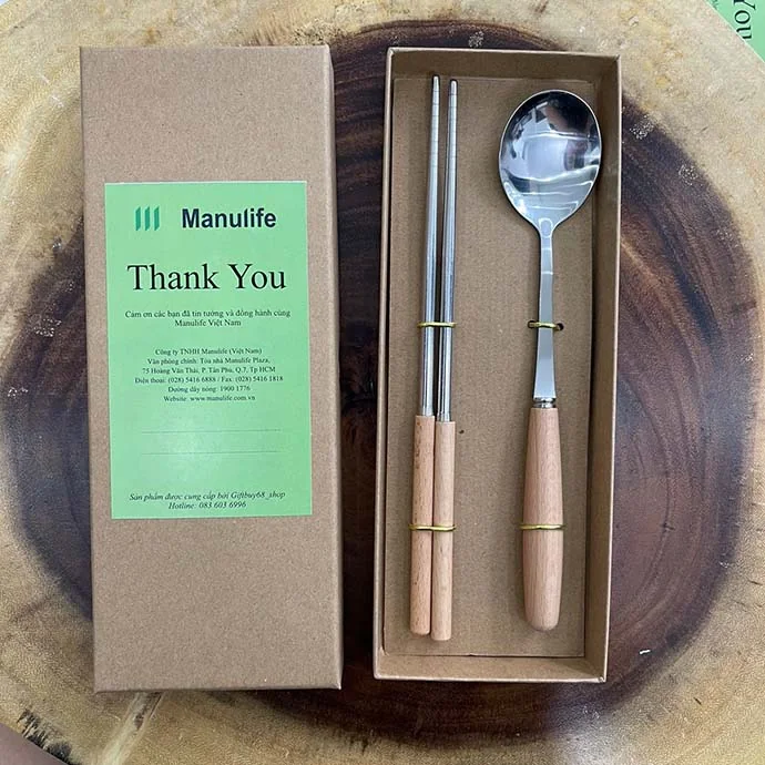 Quà Tặng Nhanh hỗ trợ in hoặc khắc laser logo, slogan lên hộp đựng hoặc trực tiếp lên muỗng đũa (nếu cần), với độ bền cao và tính thẩm mỹ vượt trội.