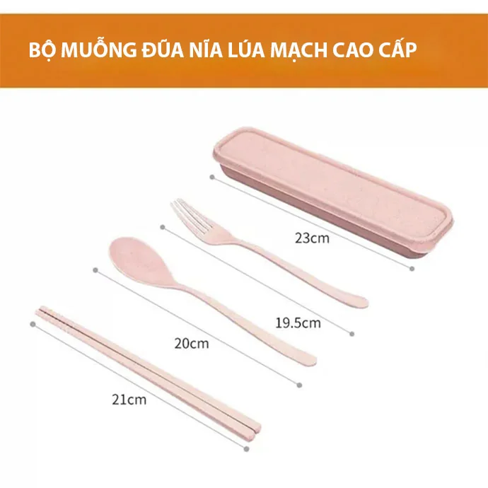- Bộ muỗng đũa nĩa lúa mạch nhỏ: hộp 21 cm * đũa 18 cm * muỗng 16 cm * nĩa 16 cm