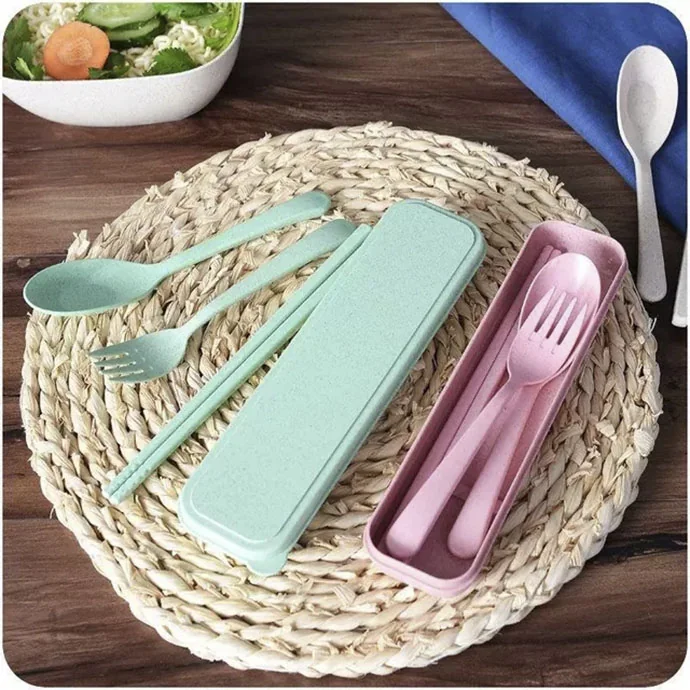 Bộ gồm 4 món: Hộp, muỗng, đũa, nĩa.