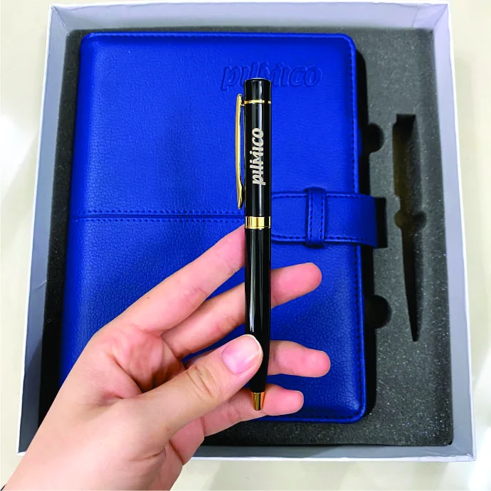Bộ quà tặng sổ da kèm bút được thiết kế trong hộp sang trọng, phù hợp làm quà tặng doanh nghiệp, hội thảo, tri ân khách hàng và nhân viên. Chất liệu da PU bền đẹp, cầm chắc tay, kèm bút ký cao cấp, tạo nên bộ quà tặng chuyên nghiệp và đẳng cấp.