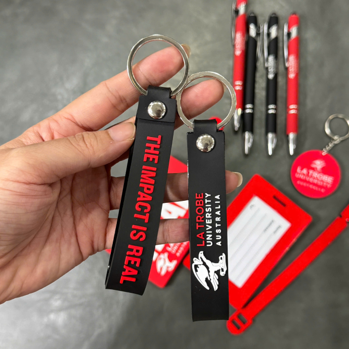 Móc khóa: Chất liệu kim loại sáng bóng hoặc giả da sang trọng, có thể khắc hoặc ép kim logo. Thiết kế nhỏ gọn, dễ sử dụng.