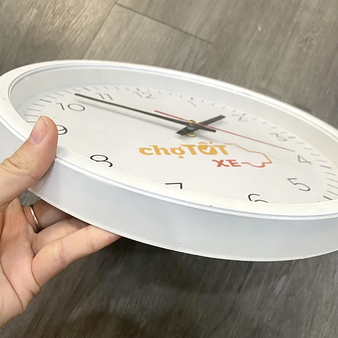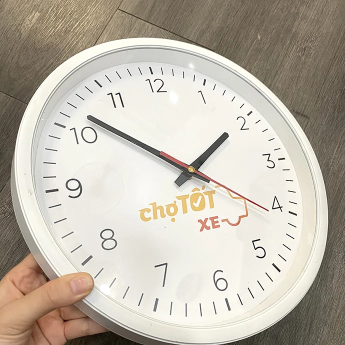 Bạn đang tìm đồng hồ treo tường màu trắng để làm quà tặng doanh nghiệp, trang trí văn phòng hay làm quà tri ân khách hàng? Đồng hồ trắng treo tường in logo Chợ Tốt là lựa chọn hoàn hảo với thiết kế tinh tế, phù hợp mọi không gian.