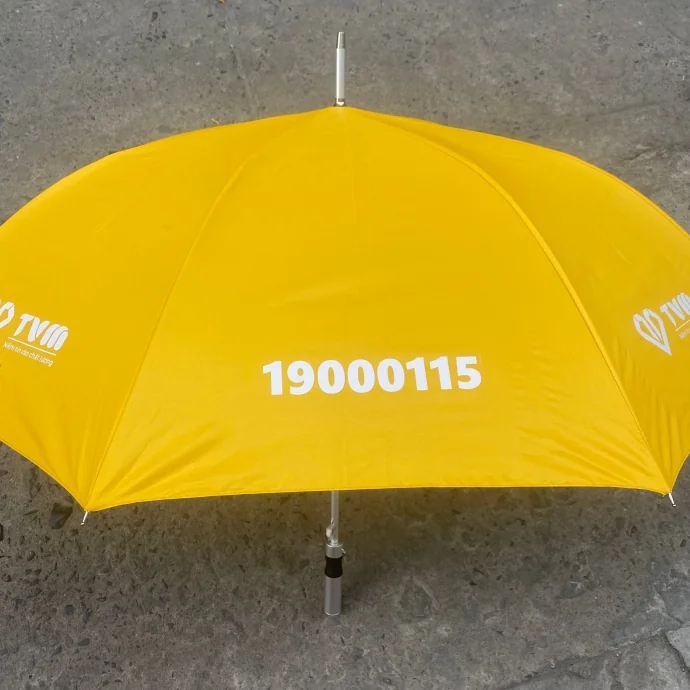 Ô dù cỡ lớn màu vàng in logo là lựa chọn lý tưởng cho các doanh nghiệp trong sự kiện, hội chợ, hoặc làm quà tặng khách hàng. Màu vàng nổi bật giúp thương hiệu dễ dàng ghi dấu ấn.