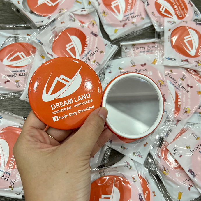 Gương mini cầm tay là món quà nhỏ xinh, có giá thành thấp, thiết kế gọn nhẹ – tiện dụng, đặc biệt phù hợp làm quà tặng khách hàng nữ. Sản phẩm hỗ trợ in logo theo yêu cầu, giúp doanh nghiệp quảng bá thương hiệu hiệu quả.