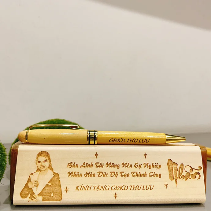 Ứng dụng công nghệ khắc laser giúp chữ và hình sắc nét, khó phai, giữ được độ tinh xảo theo thời gian. Có thể khắc tên cá nhân, lời chúc ngắn, hoặc logo doanh nghiệp.