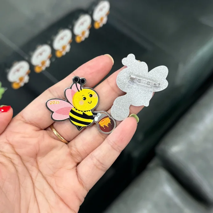 Huy hiệu hình ong dễ thương – chất liệu mica in màu nổi bật, thiết kế đáng yêu, in logo theo yêu cầu. Phù hợp làm quà tặng học sinh, sự kiện trường học, chương trình thiếu nhi.