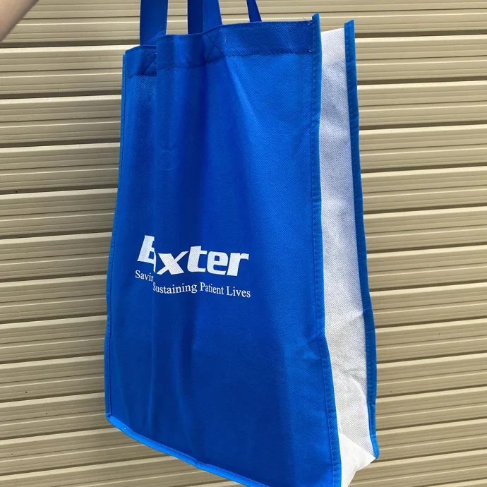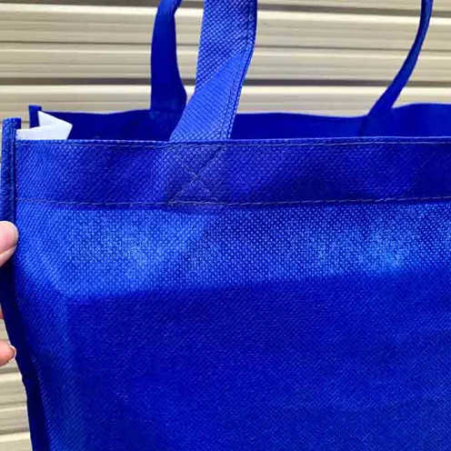Túi vải không dệt màu xanh dương nổi bật, bền đẹp, thích hợp sử dụng hằng ngày hoặc làm quà tặng sự kiện. Có thể in logo, slogan hoặc hình ảnh theo yêu cầu.