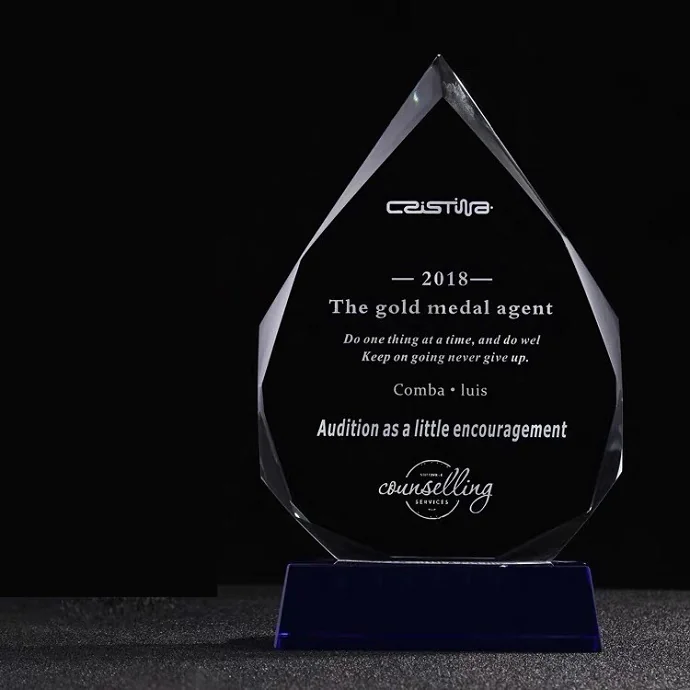 Cúp pha lê elip cạnh vát mang vẻ đẹp sắc sảo nhờ các đường cắt tinh tế, phản chiếu ánh sáng ấn tượng. Thiết kế hiện đại giúp sản phẩm trở thành biểu tượng vinh danh đầy ý nghĩa cho doanh nghiệp.