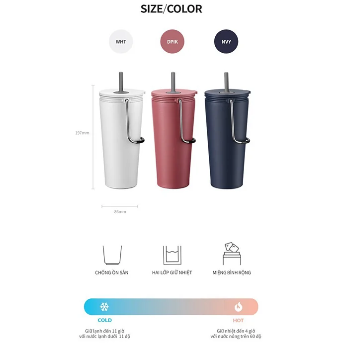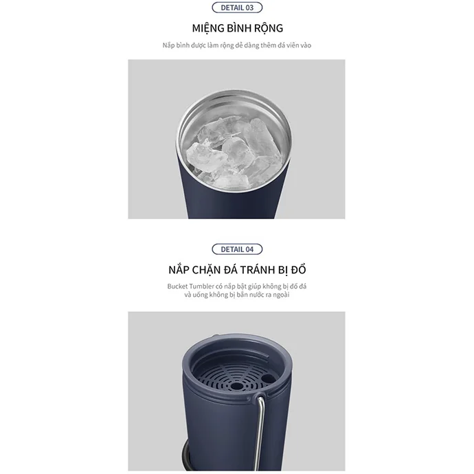 - Tay cầm giúp bạn có thể thuận tiện mang theo mọi lúc mọi nơi, nắp có thể tháo rời dễ dàng vệ sinh, miệng bình rộng đủ để vệ sinh bên trong và thêm đá viên.