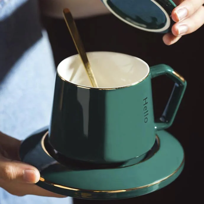 Bộ tách cà phê sứ cao cấp gồm ly, dĩa lót và thìa đồng bộ màu sắc, thiết kế tinh tế – hiện đại. Sản phẩm phù hợp làm quà tặng doanh nghiệp, quà tặng khách hàng, quà tặng sự kiện hoặc sử dụng trong quán café – văn phòng.