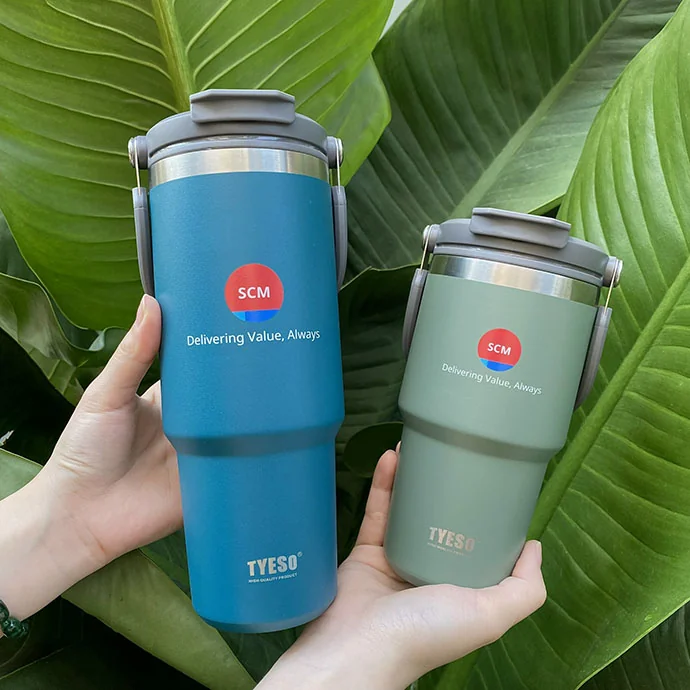 Bình giữ nhiệt TYESO tay cầm là mẫu quà tặng doanh nghiệp được ưa chuộng nhất hiện nay. Với thiết kế hiện đại, tay cầm tiện dụng và chất liệu inox 304 cao cấp, bình có thể in hoặc khắc logo theo yêu cầu để làm quà tặng nhân viên, khách hàng hoặc đối tác.