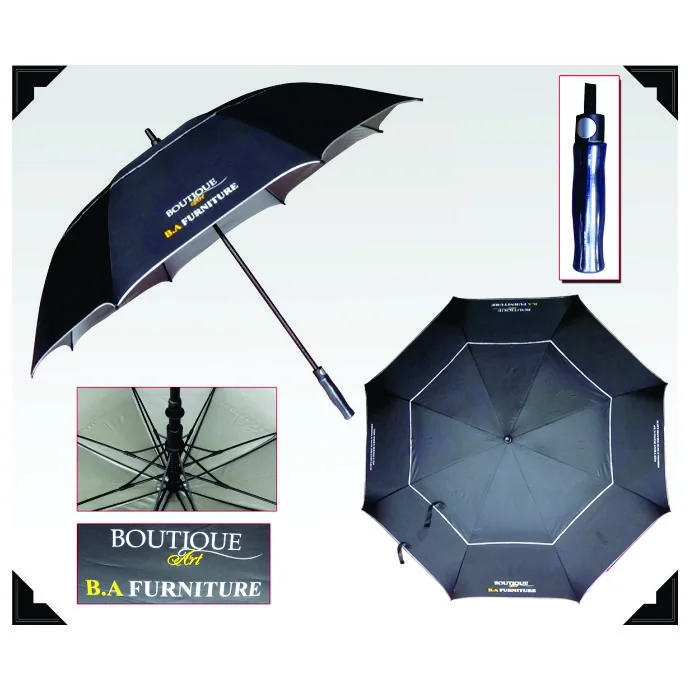 Ô dù cán thẳng màu đen xám thường được sử dụng trong sự kiện lớn, quà tặng khách hàng VIP, tri ân đối tác hoặc dùng trong ngân hàng, công ty bất động sản, doanh nghiệp tài chính.