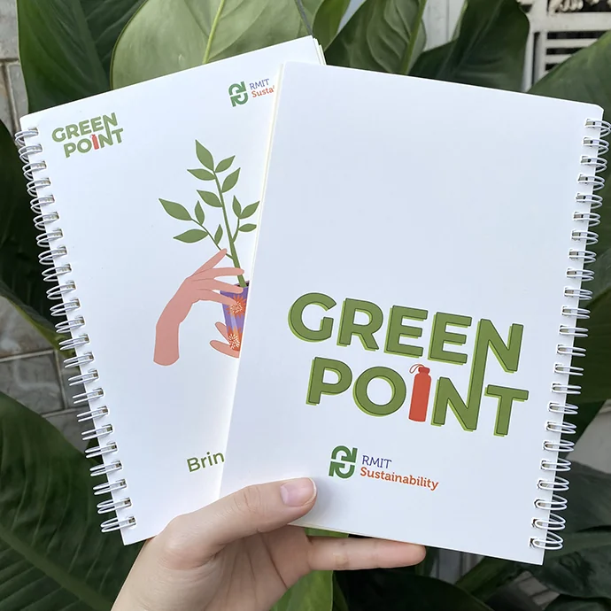 - Bìa sổ: giấy mỹ thuật in logo theo yêu cầu.