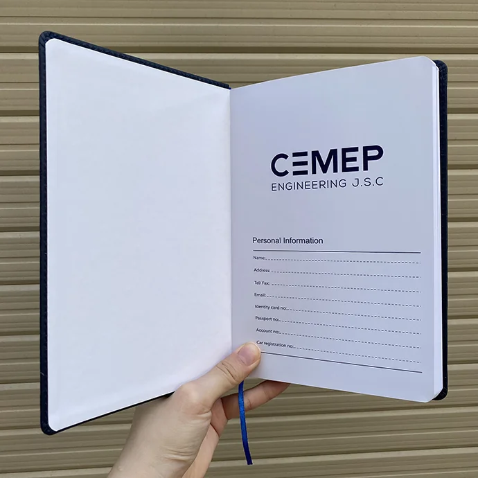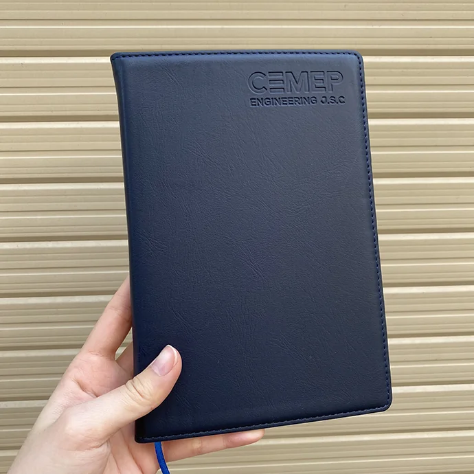 Sổ bìa da màu xanh dương in logo giúp doanh nghiệp nâng cao hình ảnh thương hiệu trong các hoạt động nội bộ và đối ngoại. Thiết kế trang nhã, độ bền cao, phù hợp sử dụng lâu dài trong môi trường làm việc.