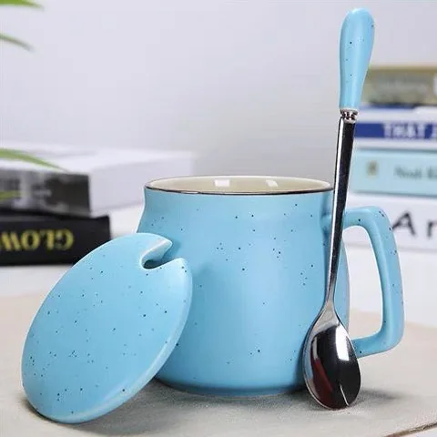 Ly sứ tráng men dung tích 280ml, thiết kế bo tròn hiện đại, bề mặt men chấm nhẹ tinh tế, đi kèm nắp và muỗng đồng bộ. Sản phẩm phù hợp làm quà tặng doanh nghiệp, quà sự kiện hoặc sử dụng hằng ngày.