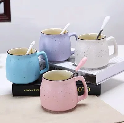Kiểu dáng tròn bầu, miệng ly rộng vừa phải, tay cầm chắc chắn. Lớp men chấm nhẹ tạo điểm nhấn thẩm mỹ, phù hợp phong cách trẻ trung và tinh tế.