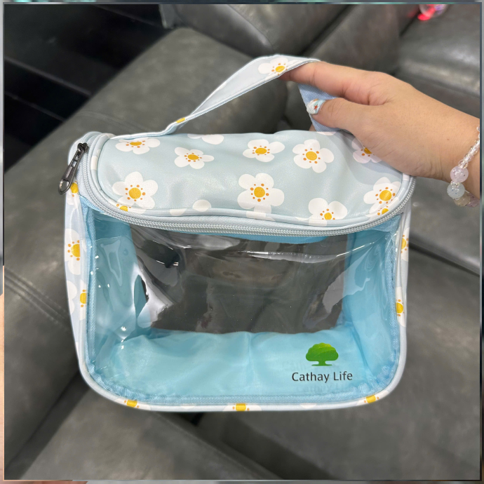 Túi đựng mỹ phẩm Cathay Life là mẫu túi tiện dụng với thiết kế ngăn lớn trong suốt, dễ dàng quan sát vật dụng bên trong. Họa tiết nhẹ nhàng cùng logo thương hiệu in nổi bật tạo điểm nhấn sang trọng.