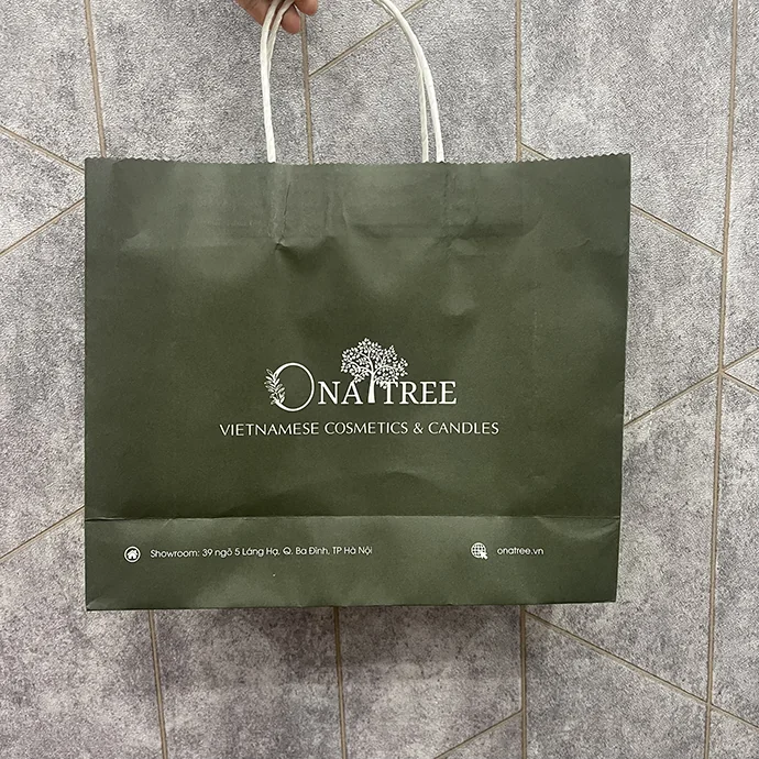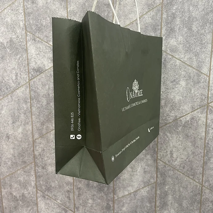 Túi giấy kraft đen mang đến cảm giác sang trọng, đẳng cấp và hiện đại. Được làm từ giấy kraft cao cấp, túi có độ bền cao, chịu lực tốt, phù hợp để đựng mỹ phẩm, nước hoa, phụ kiện, quà tặng… Với tông màu đen huyền bí, logo thương hiệu sẽ nổi bật hơn bao giờ hết.