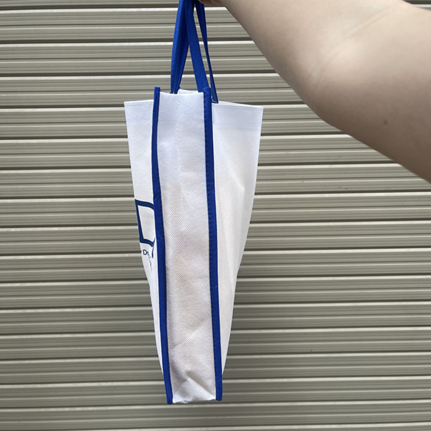 Túi vải không dệt màu trắng viền xanh là lựa chọn hoàn hảo cho quà tặng sự kiện, hội nghị và quảng bá thương hiệu. Chất liệu bền đẹp, thiết kế sang trọng, nhận in logo theo yêu cầu với số lượng lớn.