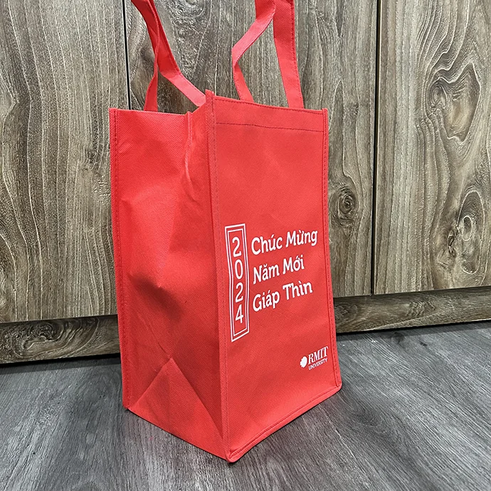 Túi Vải Không Dệt In Logo RMIT - Túi Vải Không Dệt Theo Yêu Cầu là sản phẩm lý tưởng cho các chương trình quà tặng, sự kiện hoặc làm túi xách hàng ngày. Với chất liệu vải không dệt bền chắc, túi có khả năng chịu lực tốt và có thể tái sử dụng nhiều lần. Đặc biệt, bạn có thể yêu cầu in logo hoặc thông điệp quảng cáo trên túi, giúp tăng cường nhận diện thương hiệu hiệu quả.