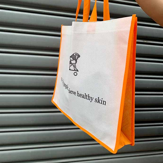 Túi vải không dệt viền cam nổi bật, kiểu dáng thời trang, phù hợp làm quà tặng sự kiện, hội thảo hoặc sử dụng hàng ngày. Có thể in logo, slogan hoặc hình ảnh theo yêu cầu.