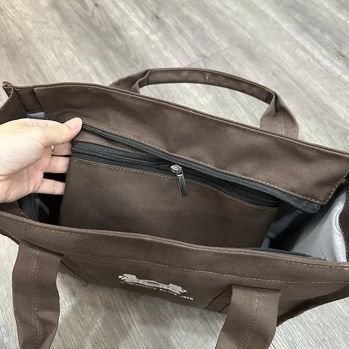 Túi xách canvas cao cấp với thiết kế cổ điển, thanh lịch và độ bền cao, phù hợp làm quà tặng doanh nghiệp, quà tặng sự kiện hoặc sử dụng hằng ngày. Sản phẩm nhận thêu logo theo yêu cầu, sản xuất số lượng lớn giá sỉ tận xưởng.