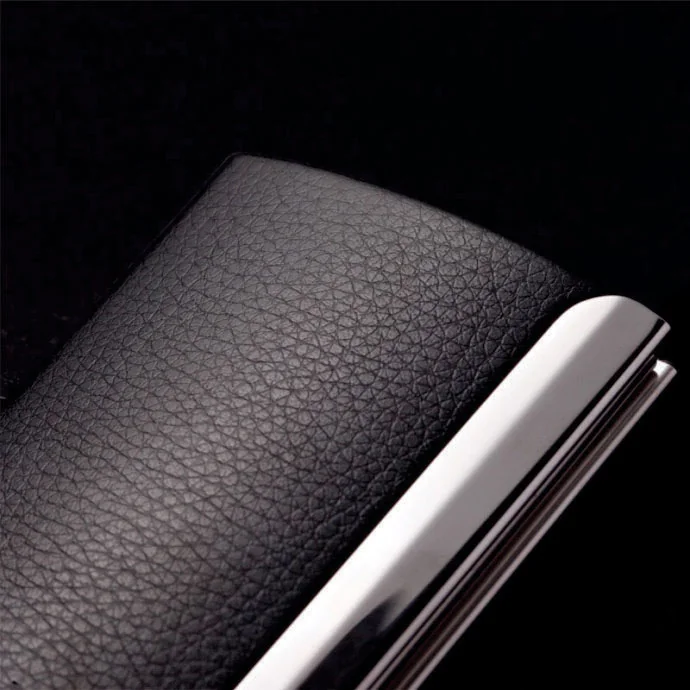 Với kiểu dáng vuông vức và chi tiết góc kim loại đặc trưng, sản phẩm dễ gây ấn tượng ngay trong lần đầu trao danh thiếp.