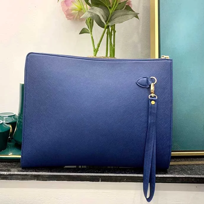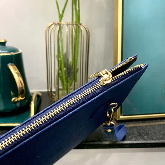 Túi cầm tay da PU là lựa chọn lý tưởng cho doanh nghiệp khi cần một món quà sang trọng, tinh tế nhưng vẫn đảm bảo tính ứng dụng cao. Màu xanh navy trang nhã kết hợp cùng phom dáng hiện đại giúp sản phẩm phù hợp với cả nam và nữ, sử dụng tốt trong môi trường công sở, hội nghị hoặc khi đi công tác.