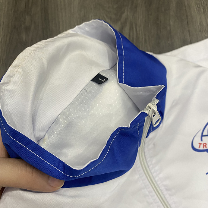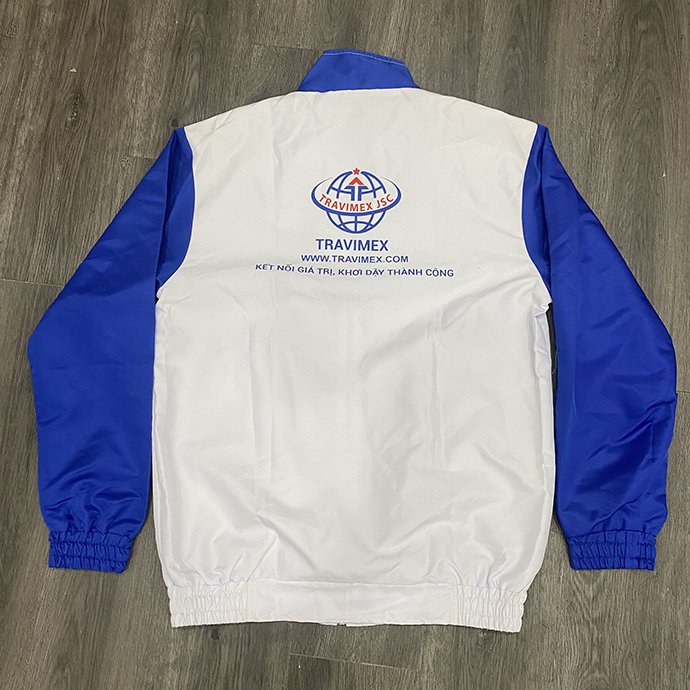Áo khoác đồng phục in logo hai mặt với thiết kế trẻ trung, hiện đại, giúp tạo ấn tượng mạnh mẽ cho doanh nghiệp hoặc tổ chức. Với màu trắng chủ đạo kết hợp với phần phối xanh nổi bật, chiếc áo không chỉ giúp bảo vệ nhân viên khỏi thời tiết mà còn nâng cao hình ảnh thương hiệu khi in logo sắc nét ở cả hai mặt.