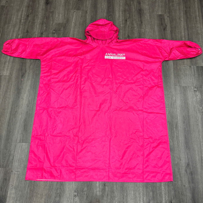 Áo mưa in logo ANNALINK thiết kế dạng cánh dơi, sử dụng chất liệu nilon chống thấm tốt – tiện lợi khi sử dụng ngoài trời, dễ xếp gọn sau khi dùng. Với màu hồng nổi bật và logo in rõ ràng ở ngực trái, sản phẩm dễ thu hút sự chú ý trong các chương trình truyền thông, roadshow hay tặng quà khách hàng mùa mưa.