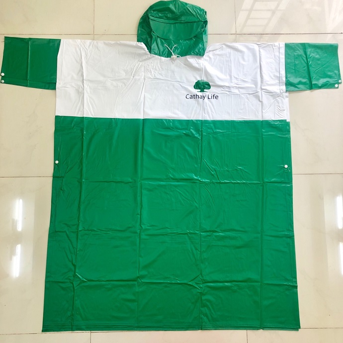 Áo mưa xanh lá phối trắng in logo 2 màu trước ngực và sau lưng