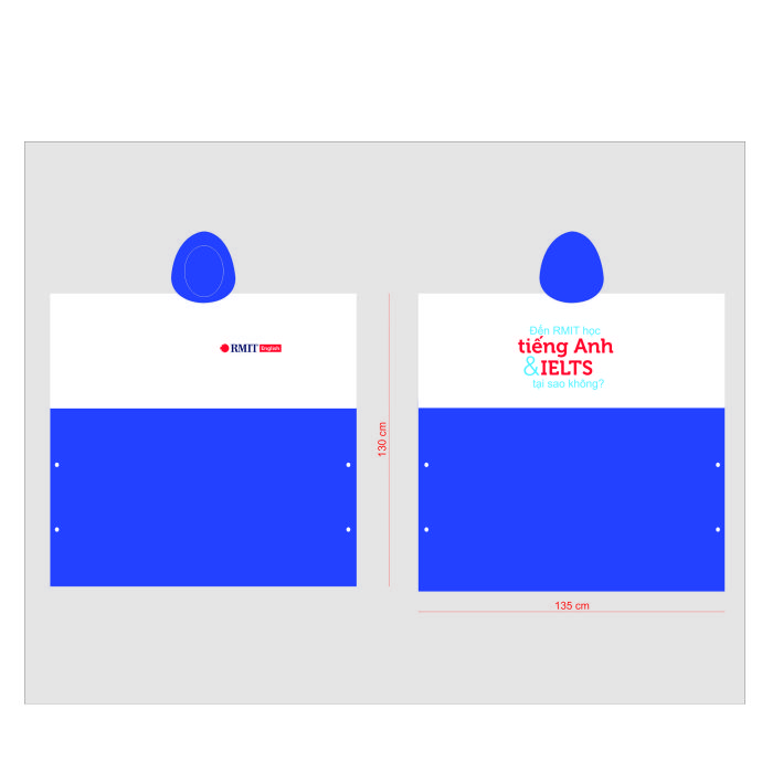 Áo mưa sử dụng phối màu trắng – xanh đậm tinh tế, phù hợp hình ảnh chuyên nghiệp của các doanh nghiệp.