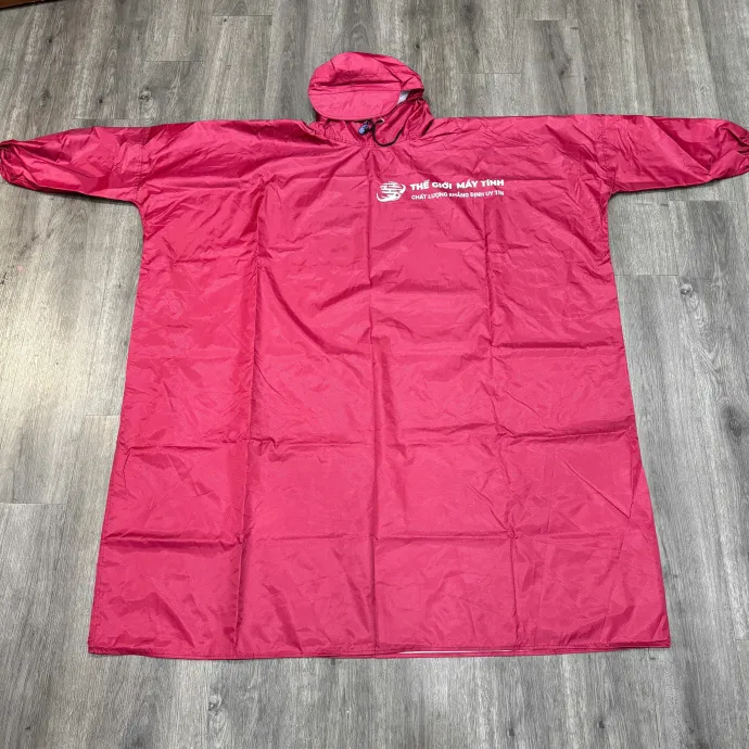 Áo mưa cánh dơi chất liệu vải dù cao cấp, chống thấm nước hiệu quả, đường may chắc chắn. Thiết kế rộng rãi, thoáng mát, có thể in logo doanh nghiệp để làm quà tặng quảng cáo, sự kiện hoặc tri ân khách hàng.