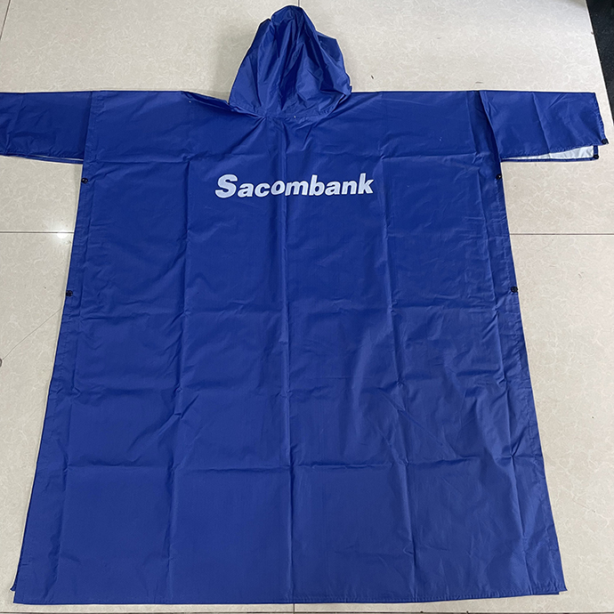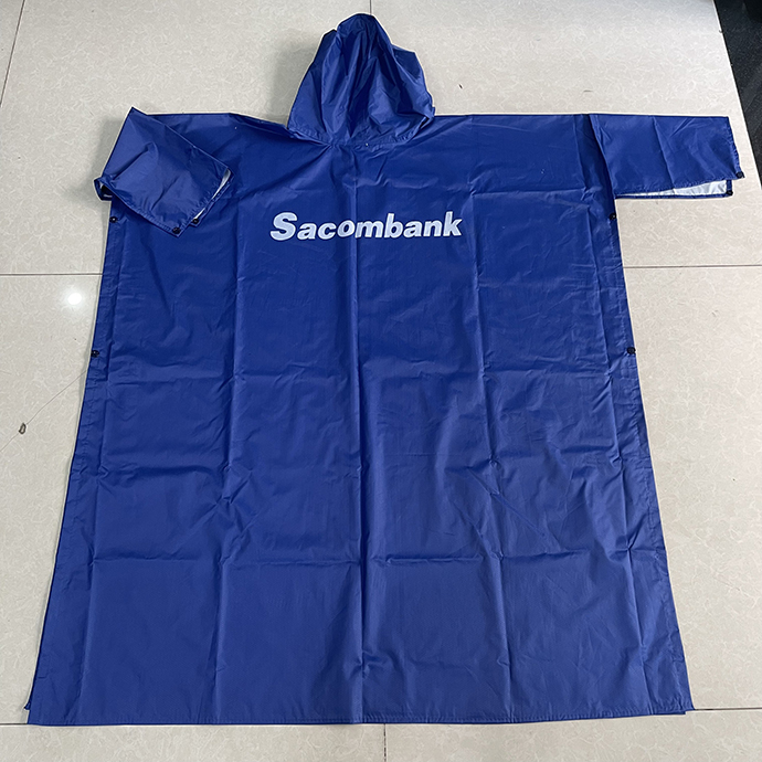 Áo mưa doanh nghiệp Sacombank là mẫu áo mưa quảng cáo cao cấp, được thiết kế riêng với tông xanh dương thương hiệu đặc trưng của ngân hàng. Sản phẩm có chất liệu vải dù chống thấm bền bỉ, nhẹ và mau khô, in logo trắng sắc nét thể hiện sự chuyên nghiệp và uy tín của thương hiệu Sacombank.