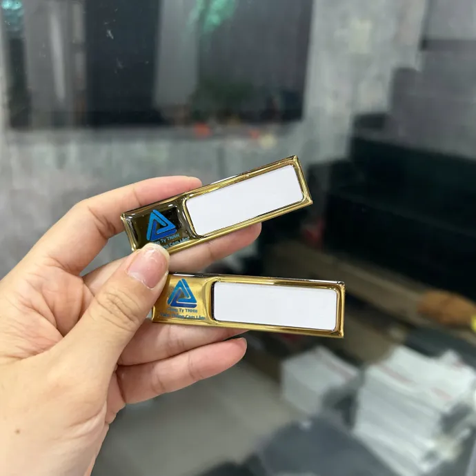 Bảng tên nam châm cao cấp thiết kế sang trọng, gắn chắc chắn không cần ghim, phù hợp làm thẻ tên nhân viên, bảng tên sự kiện, in logo theo yêu cầu số lượng lớn.