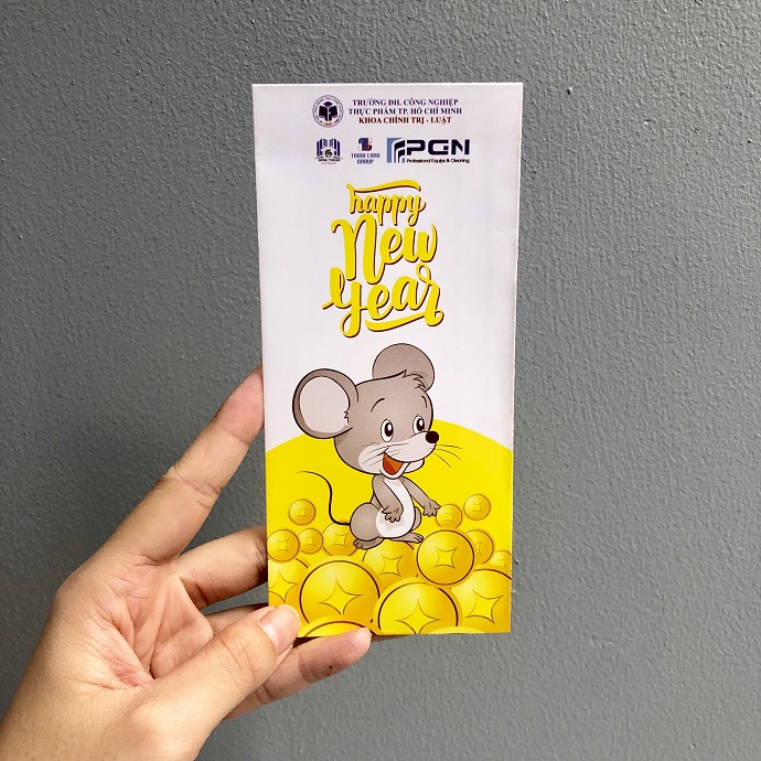 Mẫu bao lì xì là sự kết hợp giữa tông vàng tài lộc và hình chuột đáng yêu, mang lại không khí Tết vui tươi phù hợp cho mọi lứa tuổi.