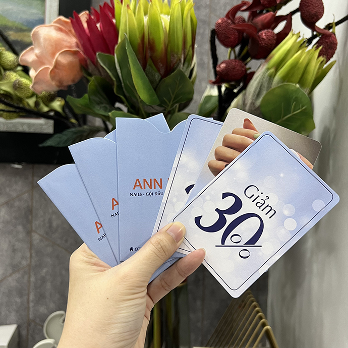 Nhận thiết kế và in ấn voucher theo yêu cầu. Giao hàng nhanh toàn quốc, hỗ trợ số lượng linh hoạt và ưu đãi đặc biệt cho khách đặt sỉ.
