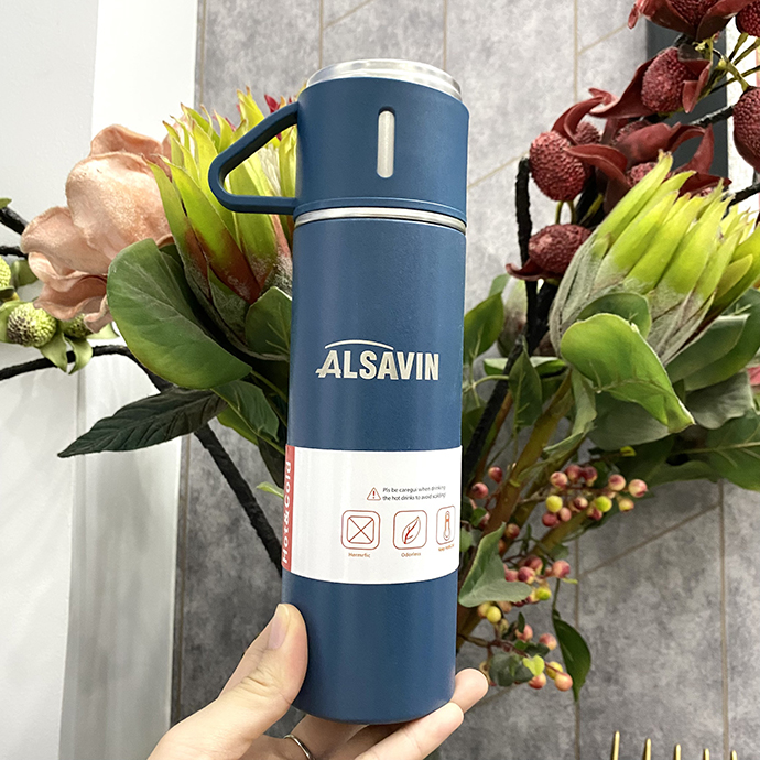 - Bình giữ nhiệt cao cấp 500ml lõi inox 304 kèm 2 cốc, full box làm quà tặng sang trọng.