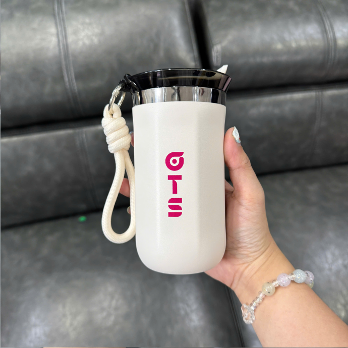 Ly giữ nhiệt dây treo cao cấp – thiết kế tinh tế, gam màu trắng trang nhã, dễ in logo theo yêu cầu. Phù hợp làm quà tặng hội nghị, ngân hàng, công ty hoặc sự kiện đặc biệt.