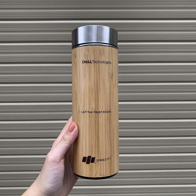 Bình hỗ trợ khắc laser logo trực tiếp lên vỏ tre hoặc in logo theo yêu cầu. Logo hiển thị tinh tế, phù hợp cho quà tặng thương hiệu, quà tri ân khách hàng.