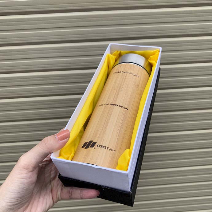 Bình giữ nhiệt thiết kế vỏ tre tự nhiên, kết hợp hộp quà sang trọng, phù hợp làm quà tặng doanh nghiệp, quà tri ân và sự kiện. Sản phẩm hỗ trợ in hoặc khắc logo theo yêu cầu.